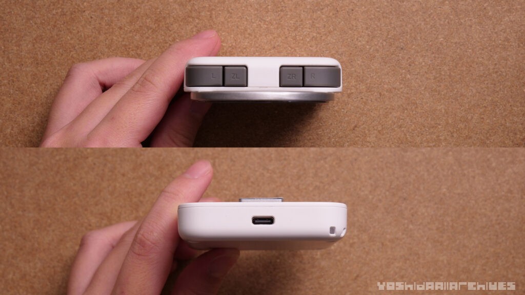 コントローラー本体だけ持ってみるとまさにつまむ感じで使う最小単位のコントローラーといった印象です。縦に長く、ショルダーがある分人差し指を引っ掛けることが可能で、握れる感じはあります。
