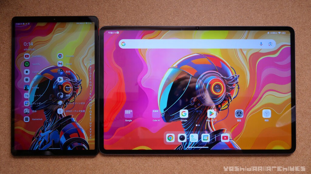 iPlay 70 Mini Ultraと並べてみました。8.8インチの端末と比べるとかなり大きいです。倍以上の体感。