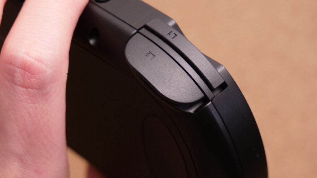 ショルダーボタンはがカチカチと大きめな音がするタクトスイッチ。縦並びで押し分けやすいです。
