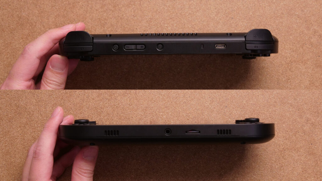 上側面にはL1/L2、電源ボタン、ボリュームボタン、リセットボタン、USB Type-C、R1/R2