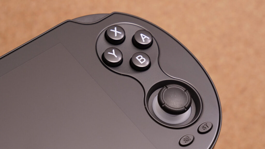 右側にニンテンドー配置のABXYボタン、アナログスティック、スタートセレクトボタン、