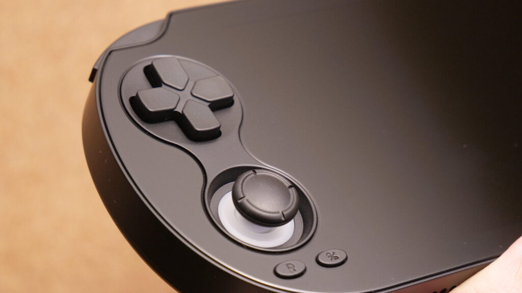 方向ボタンもVitaライクな形状とサイズ感ですが、感触は導電性ラバー。シーソーも可能で、入力は良好に感じます。
