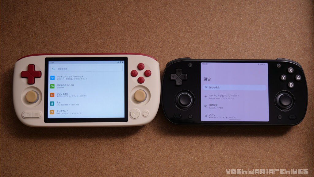 Retroid Pocket Miniと比べたのがこちら。ほぼ同じくらいのサイズ感です。