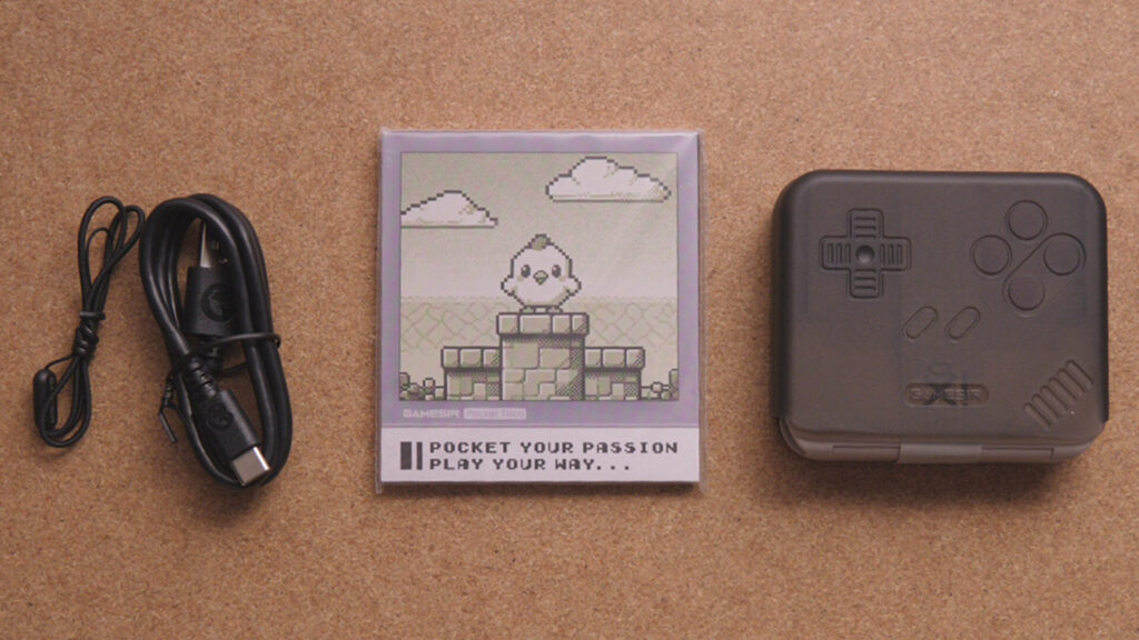 箱はこちら。ゲームボーイを意識させるデザインがされた画像がプリントされています。