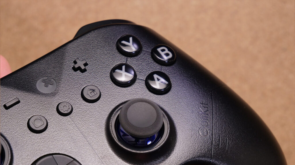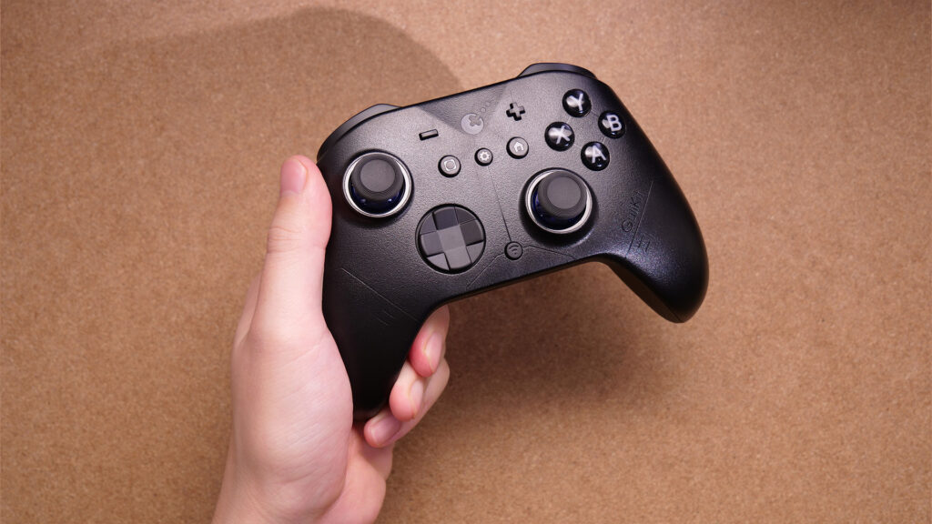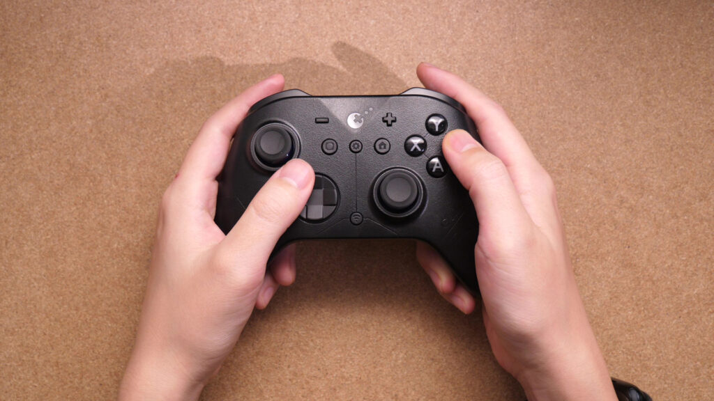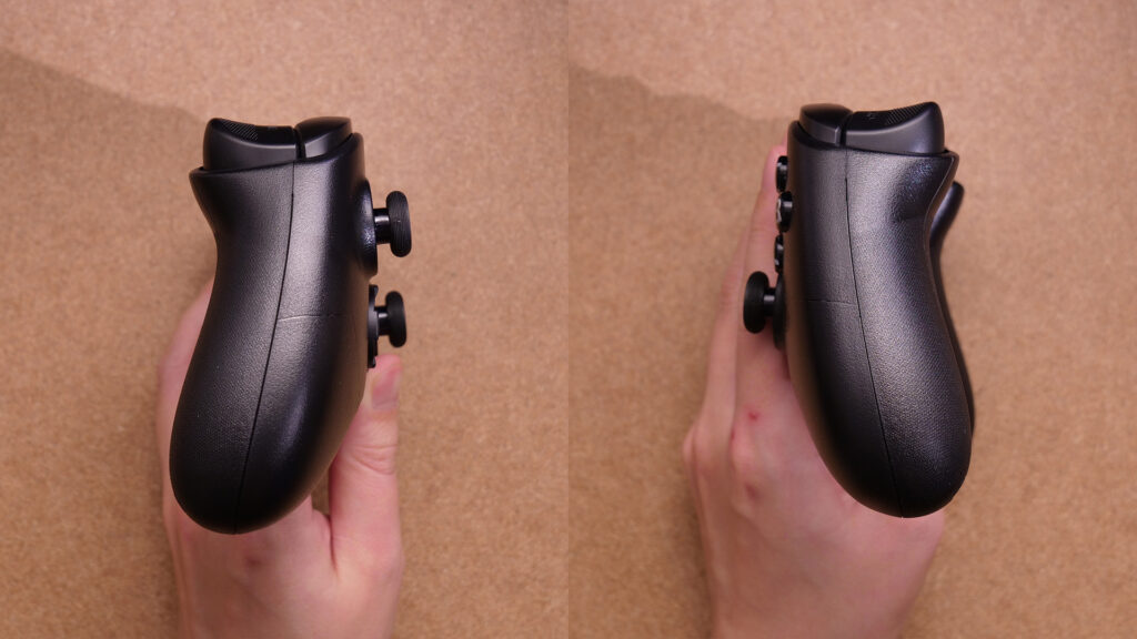 こちらはいわゆるXBOXフォルムのスタンダードなコントローラーで、背面パドルやトリガースイッチなどの付加価値的な機能はありません。かなりシンプルな構成です。