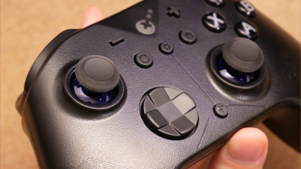 方向ボタンはプチプチとした感触のタクトスイッチ。XBOXコンよりも若干軽めで、音も小さいです。シーソー可能で、入力も良好に感じます。