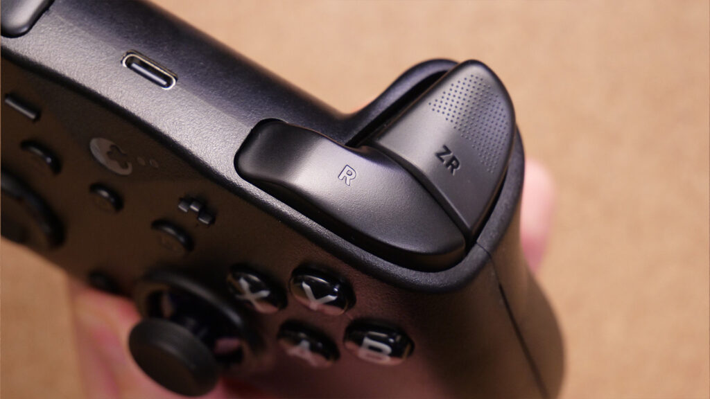 感触はLRはコツコツとしたタクトスイッチで静音性高め。ZLZRはストロークが長いトリガーボタンで、トリガースイッチでの切り替えなどは不可能です。