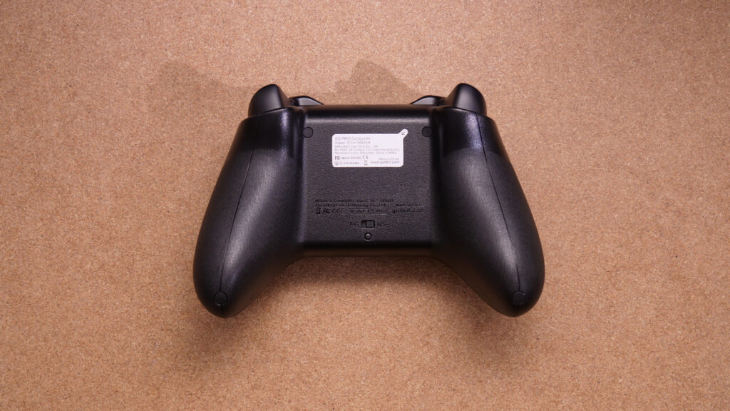 背面にはモード切り替えスイッチがあります。バックボタンやトリガースイッチはありません。