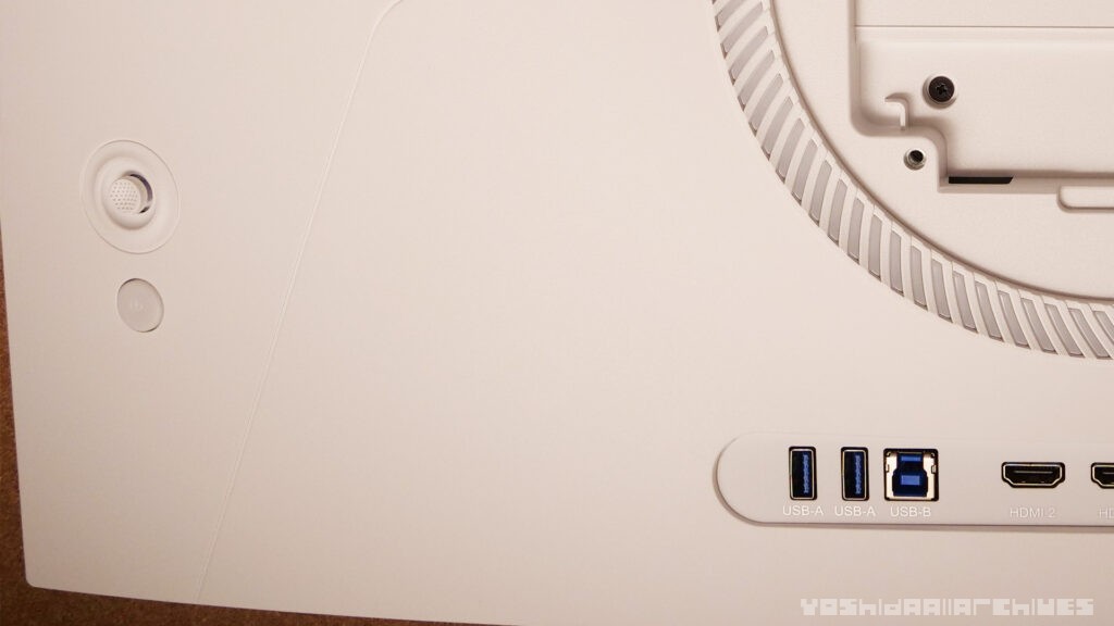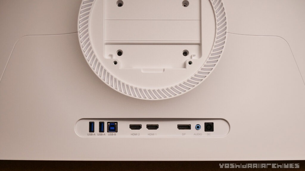 インターフェースはHDMI 2.1×2、DisplayPort 1.4、USB 3.0ハブ(Type-A×2/Type-B×1)を搭載し、PCだけでなくPS5・Xbox Series Xなどの最新ゲーム機にも対応。スピーカーも内蔵しています。スタンドは昇降・チルト・回転に対応し、VESAマウントも使用可能。筐体はホワイトで統一され、ゲーミングモニターとしては珍しい配色なのもポイントです。