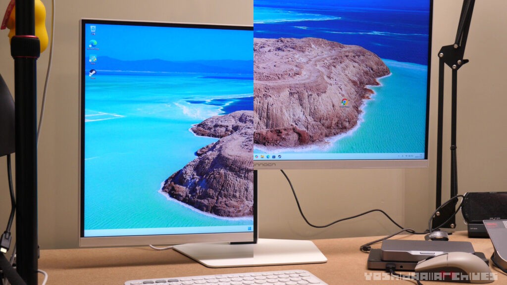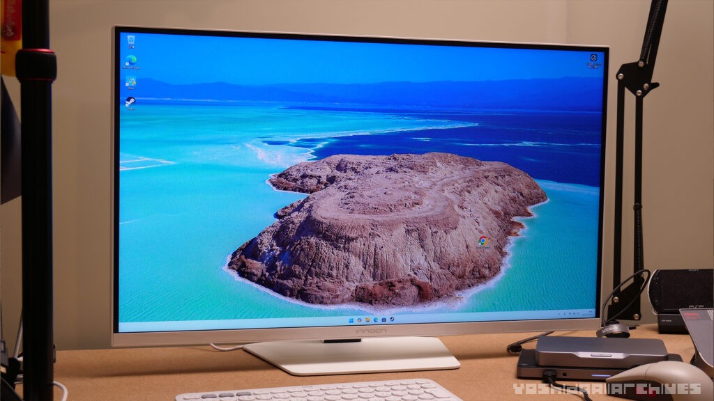 画質もいわゆるFHDではなく、2.5Kなので4Kと比較すると解像度は低いですが、実際PCで使う場合、27インチで4Kだと文字が小さくなりすぎてしまい、結局拡大表示することになってしまう、というか実際私はそうしているので、ディスプレイサイズ的には丁度よい解像度だと思います。