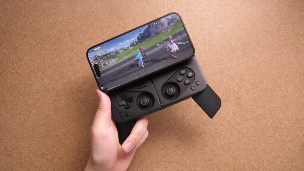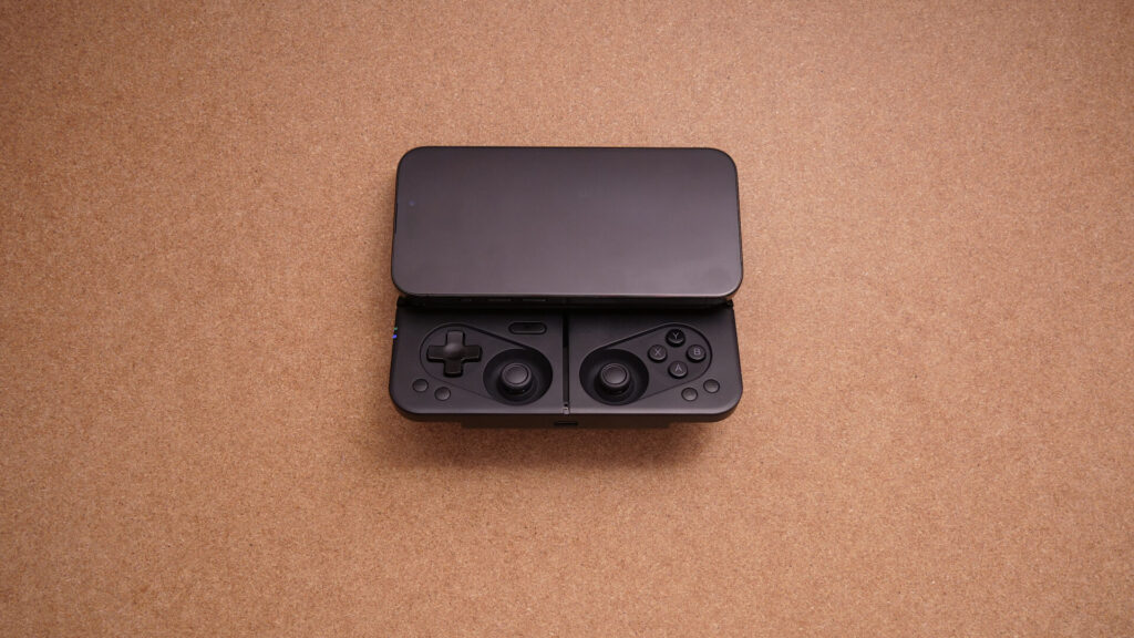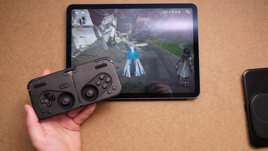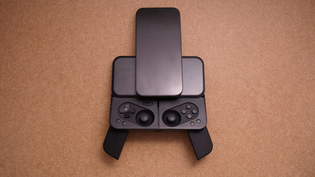 こちらはいわゆるスマホ用コントローラーで、MagSafe着脱ができて、スライド式。つまり言ってしまえば、iPhoneをPSP GOみたいにできちゃう、おもしろコントローラーなんですよね。クラファンで2万円くらいで出資しました。