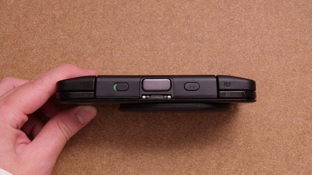 背面のグリップは開いていても閉じていても使えます。ヒンジが硬いので、ここは安心感があります。