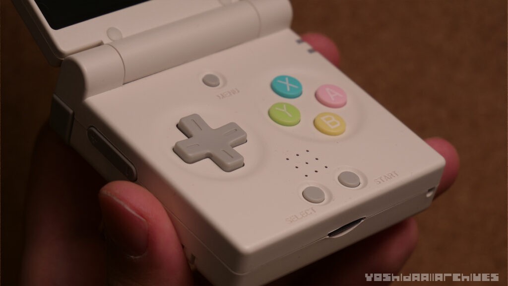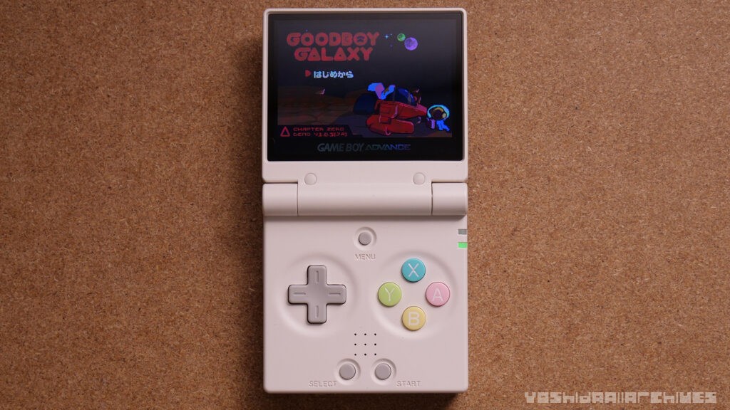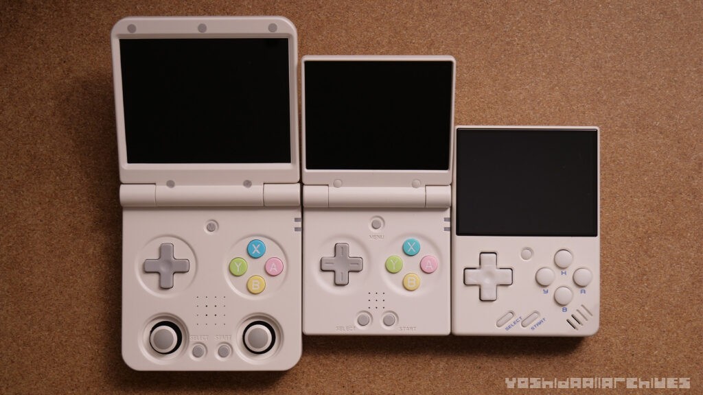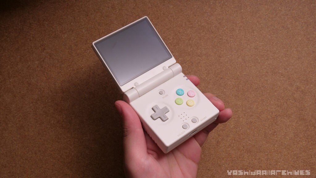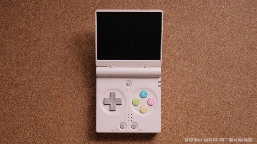 ディスプレイはシェル勝ちのGBASPらしい構成ですが、エッジを面取りしていてMiyooらしく結構ベゼル狭めなので画面が大きく感じて良いです。
