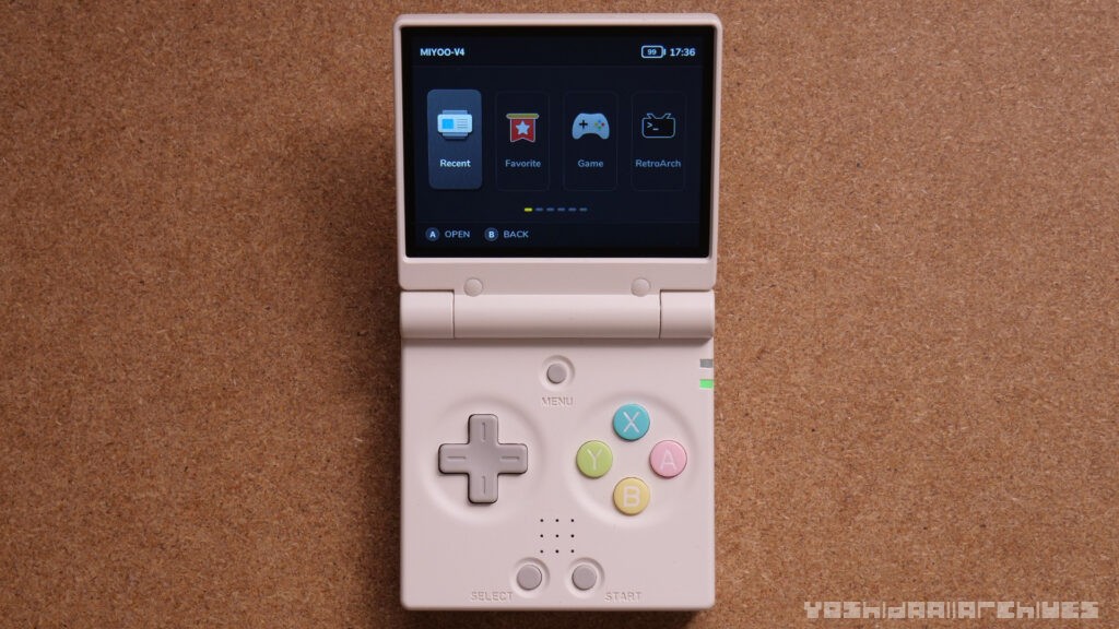搭載されているOSはMiyooによる独自LinuxOS。Miyoo Miniから踏襲の見慣れたUIです。では初期ロット、初期OSがどのような感じか見ていきます。