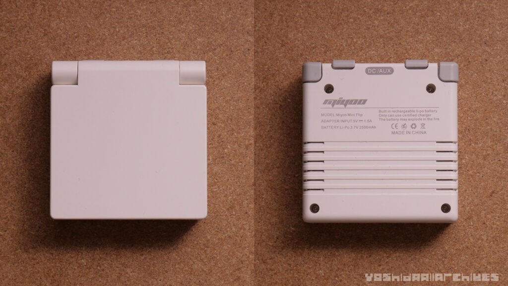 前回のMiyoo FlipはあくまでGBAと同じサイズ感のモデルでしたが、今回のモデルはそれを更に小さく、まさにMiyoo Miniの折りたたみバージョンと言ったサイズ感と仕様で、非常に最強。