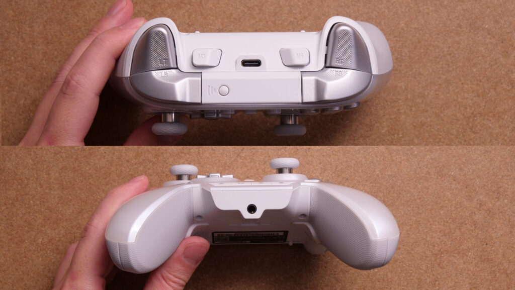 上側面には左から、L、LT、ペアリングボタン、M3ボタン、USB-C、M4ボタン、R、RT。