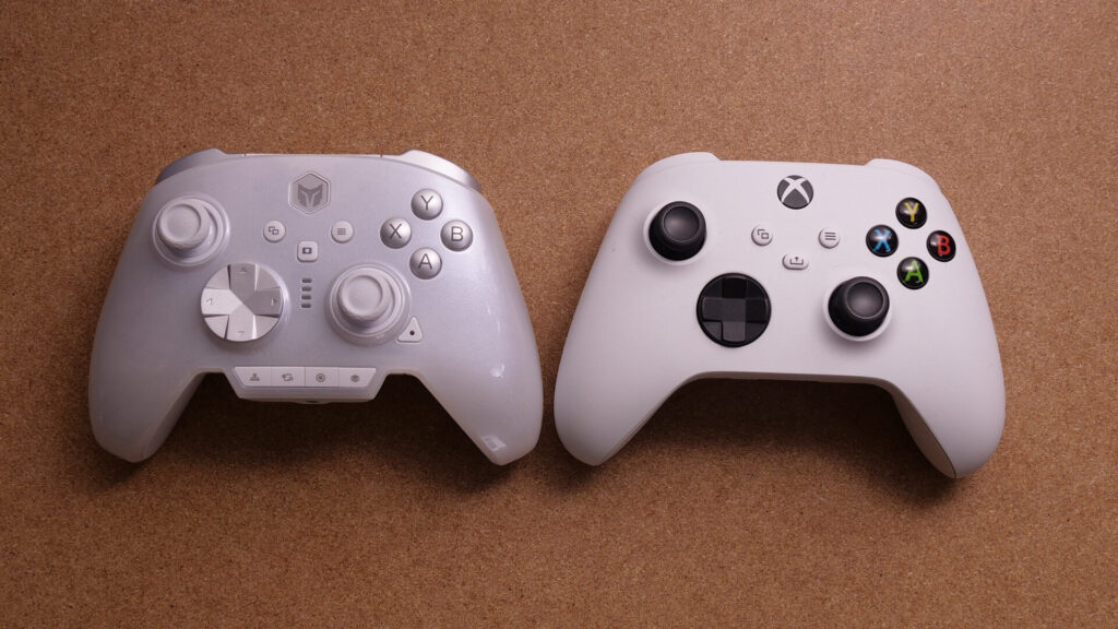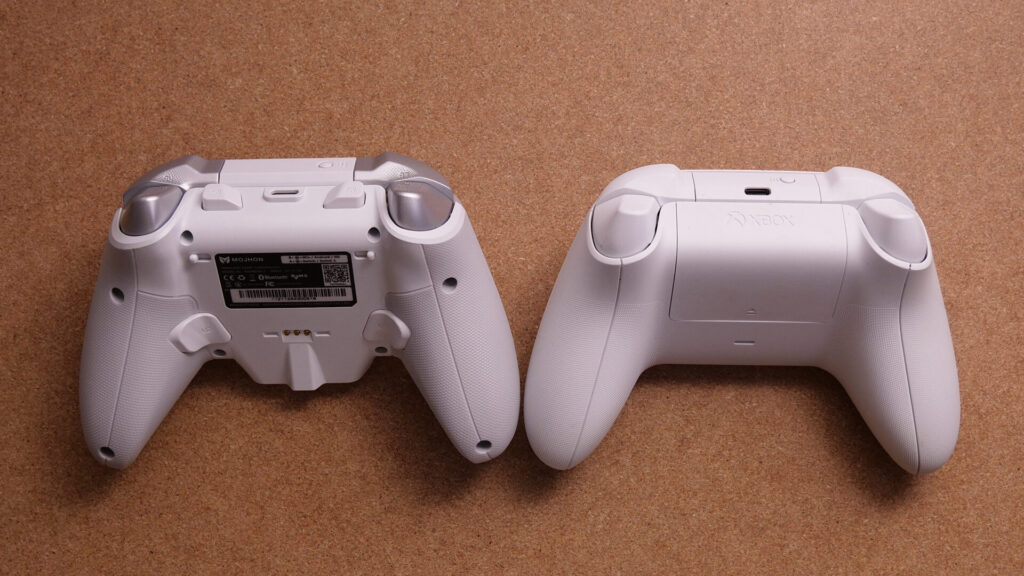 形や基本的なボタンレイアウトはほとんど一緒ですね。XBOXコントローラー準拠なフォルムとボタン形状です。