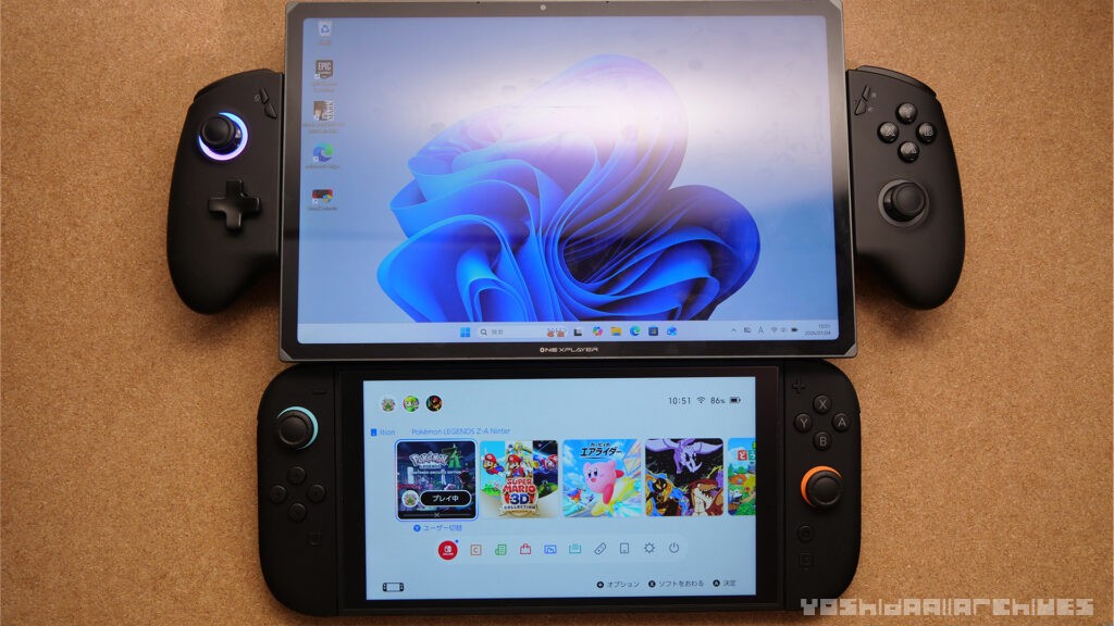 X1 miniがゲーム機とパソコンとタブレットのちょうど中間のような印象のモデルであったのに対して、こちらはいわゆるSurfaceのようなPCにコントローラーをくっつけれるようにしたようなバランス。