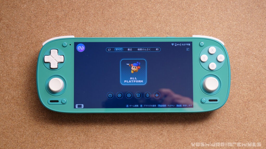 スイッチライクなビジュアルでシンプル、使い勝手としては悪くありませんが、エミュレータ用のフロントエンドランチャーは他にも様々あるので個人で気に入るものがあれば変更してみるのも良いかと思います。ちなみに私のお気に入りはDaijisho。