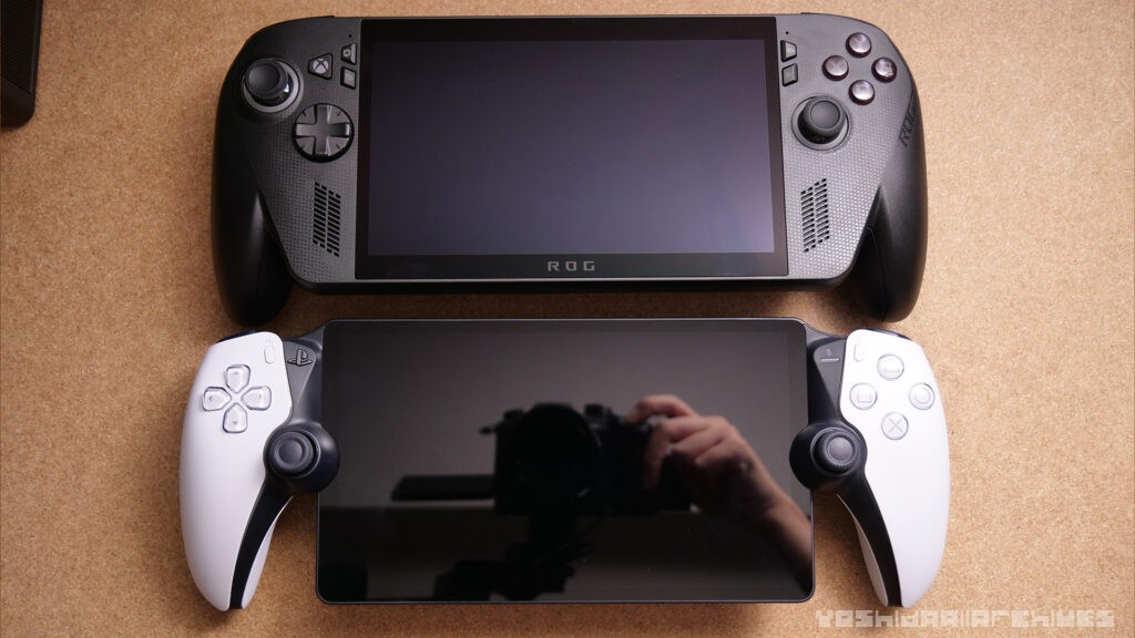 同じくグリップがニョキッと伸びたPSPortalと並べてみたのがこちら。握った感じとしてもこの中では明らかにPortalの感覚に近いです。見てわかるとは思いますが。