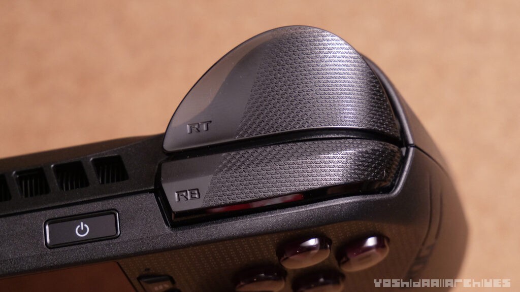 ショルダーボタンもXBOXコントローラー系で、こちらも滑り止めのつぶつぶテクスチャ、LBRBはポコポコとした柔らかめのタクトスイッチ、LTRTはトリガーボタンで大きめのストロークのアナログトリガー。