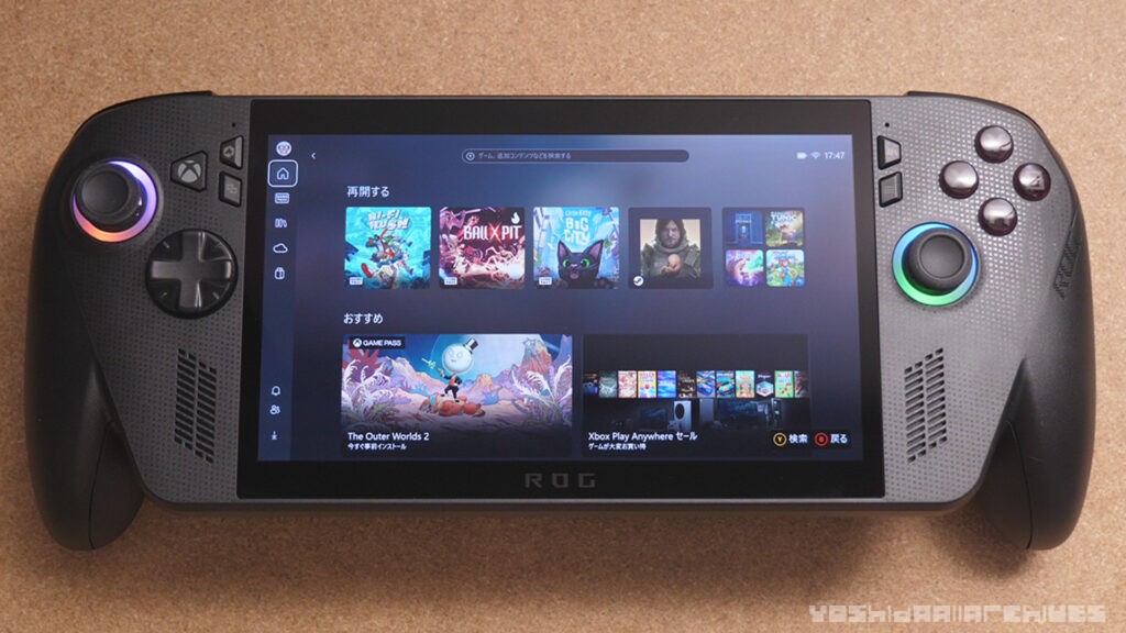 使っている上で、XBOXゲーパスを遊ぶ分には完全に快適であったりするけどSteamや他のクライアントを使用する場合にちょっと挙動があやしくなったりと、まだUIでもスリープでも不安定に感じる瞬間はありますが、これまでのWindowsハンドヘルドに比べると圧倒的に快適なので、今後のアップデートによる改善に期待ですね。現時点でもだいぶ満足感はありますが。