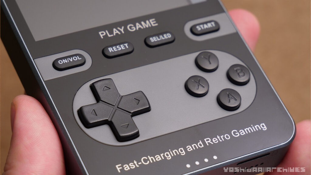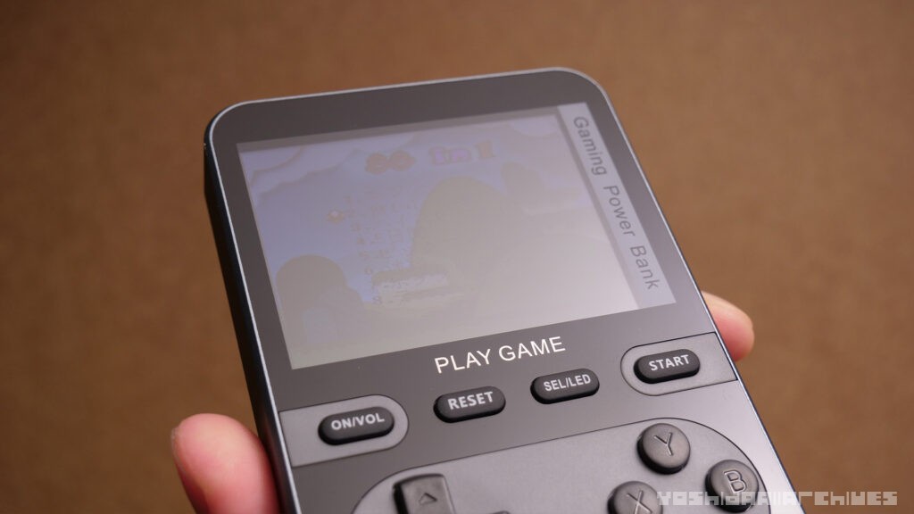 ちなみにバッテリー機能とゲーム機能は別なようで、バッテリー残量をディスプレイ上で見れたりはしない上、バッテリーとして使う場合には上側面の電源ボタンでオンにする必要があります。