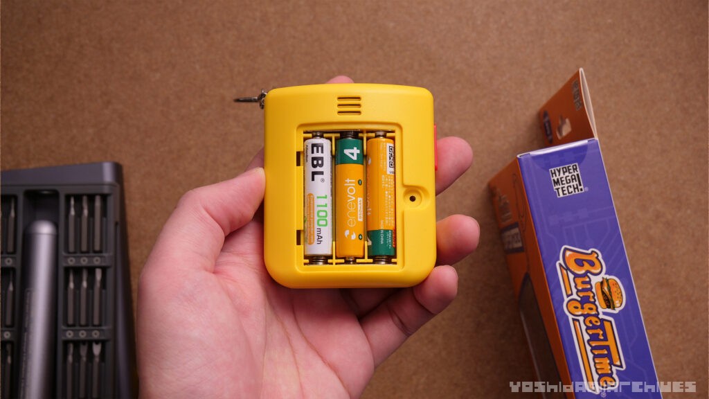 本製品にはバッテリーは搭載されておらず、背面の電池蓋を開けて単4電池3本入れる必要があります。正直せめて2本にしてほしかったなと思うのと、あとはフタを開けるのにドライバーが要るのがちょっと面倒だと思いました。