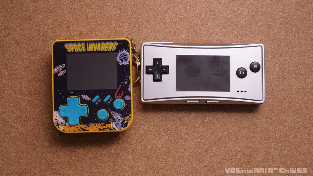 コンパクトな携帯ゲーム機代表格としてゲームボーイミクロと並べてみました。縦横の違いはあるものの、ゲーム体験として、全体的なボリュームとしては同等だと感じます。