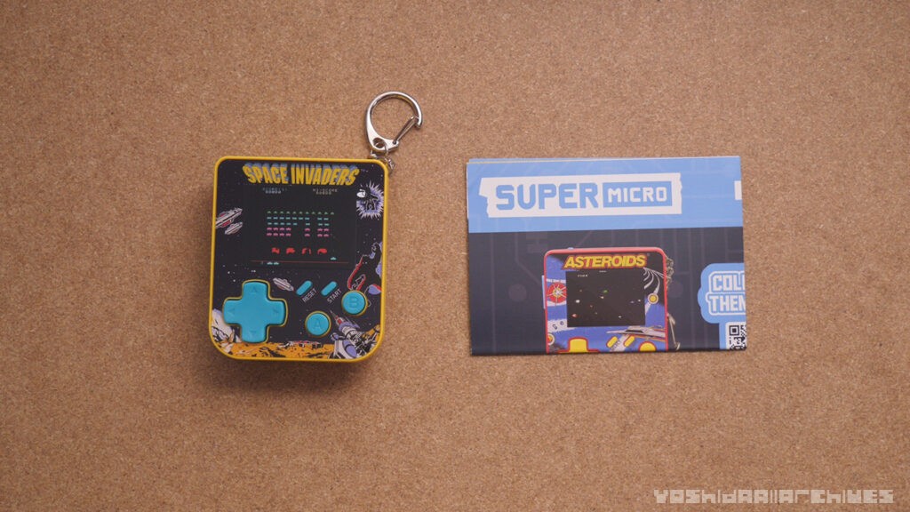 Super Micro Keychain Gamerは、HyperMegaTech!が開発したキーホルダーサイズの超小型携帯ゲーム機です。手のひらにすっぽり収まるほどのミニサイズながら、アタリやタイトー、データイーストといった往年の名作ゲームを内蔵しており、「どこでも遊べる懐ゲー体験」をコンセプトに設計されています。