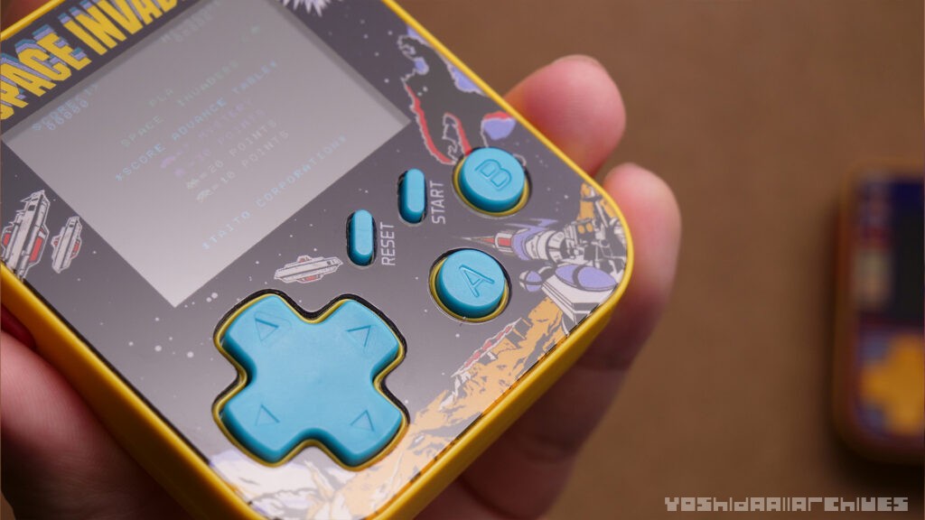 方向ボタンはもボタン同様の押し心地で。シーソーも可能ですが軸感がかなり小さく、なんとなくざっくりとした入力で、シンプルな操作とはいえ誤入力を感じます。Super Pocketの時も思いましたが、ラバーの感触は全体的にもう少し頑張ってほしかったかも。