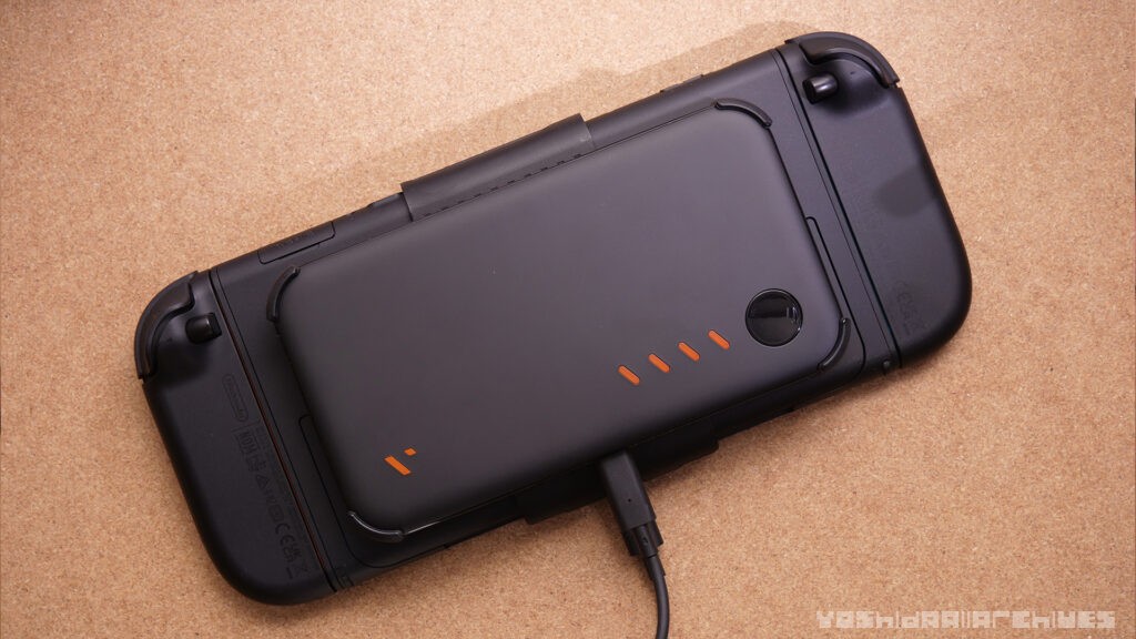 使い方は簡単で、この巨大なモバイルバッテリーのようなドックにSwitch2を接続、そして専用のマウントでがったいさせたりしてみて、ドックの別の口とグラスを接続させるだけ。