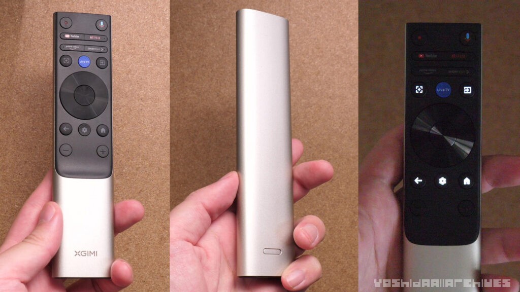 リモコンもかなり高級感があり、ボタン部分以外はメタルシェルでひんやり重量感、ボタンにはLEDもあります。