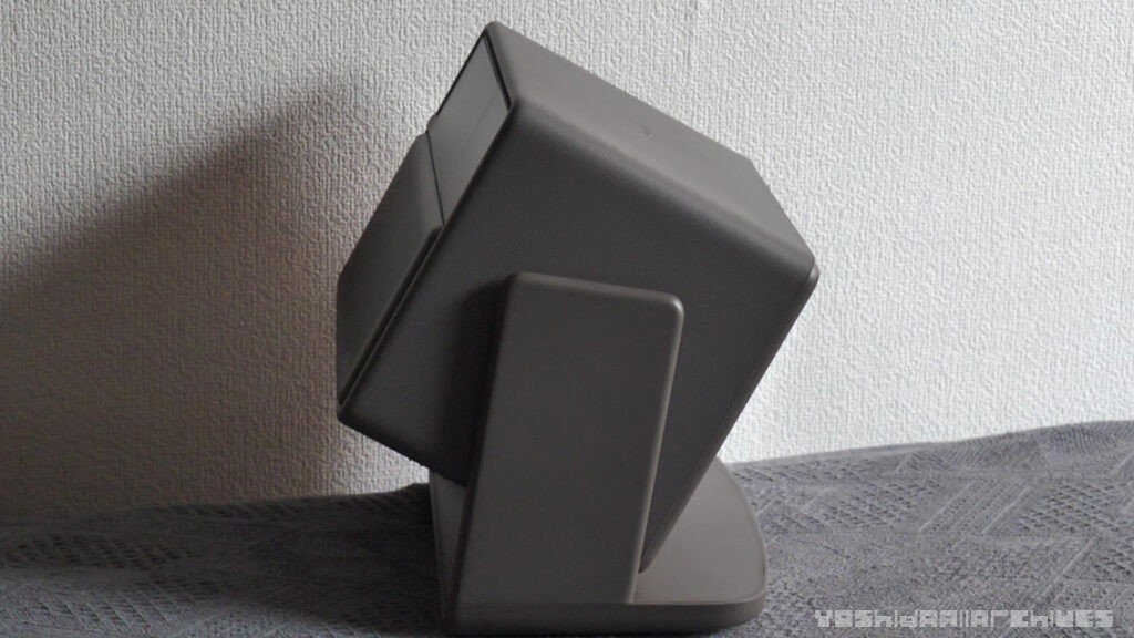 上下に振れるように支えが左右にあり、下部には回転できる台、かなりスムーズで自由に上下左右できますが、しかし安定感はしっかりとあります。