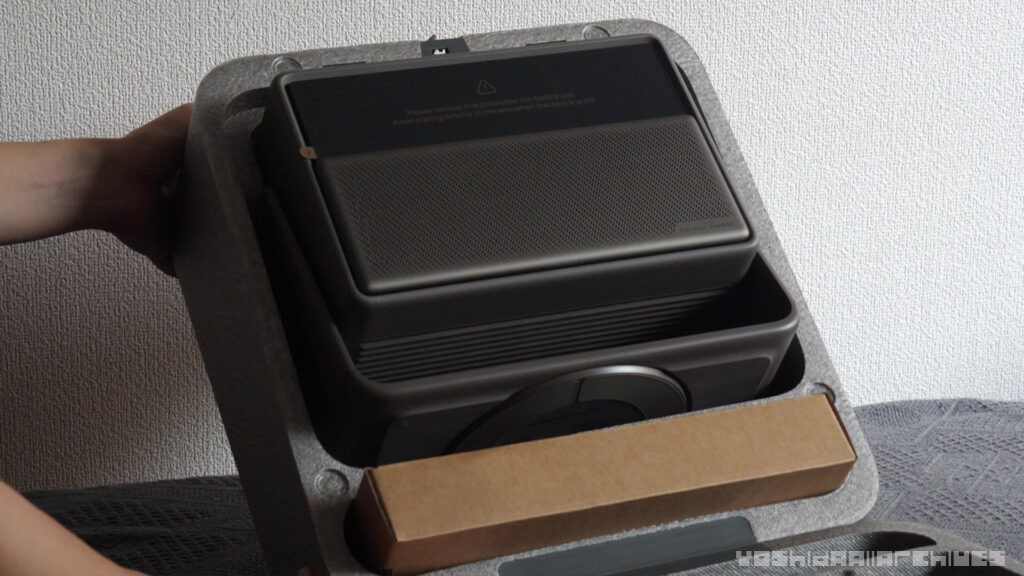 箱から出してみると、そこまでのサイズ感ではないと言うか、想定していたプロジェクターのサイズ感・重量感です。