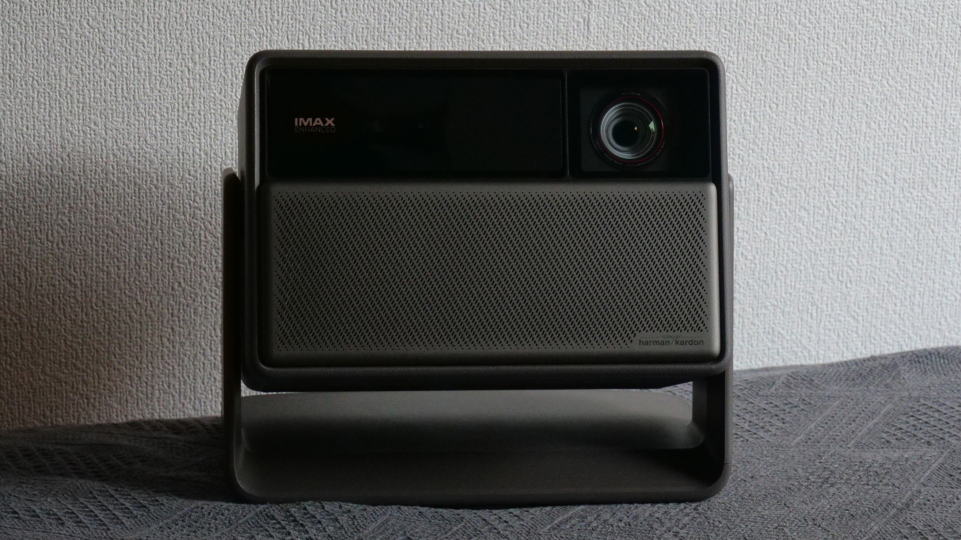 プロジェクション部分には保護シールが貼られていて、剥がすとレンズとIMAXの文字が。下部はスピーカーになっていて、Harman/Kardonの文字が。IMAXに対応しているってどういう事?って思って調べてみたのですが、どうやら「IMAX映画館そのもの」ではないが、家庭でIMAXに近い明るさ・色・音・映像比率を楽しめるように調整された規格とのこと。